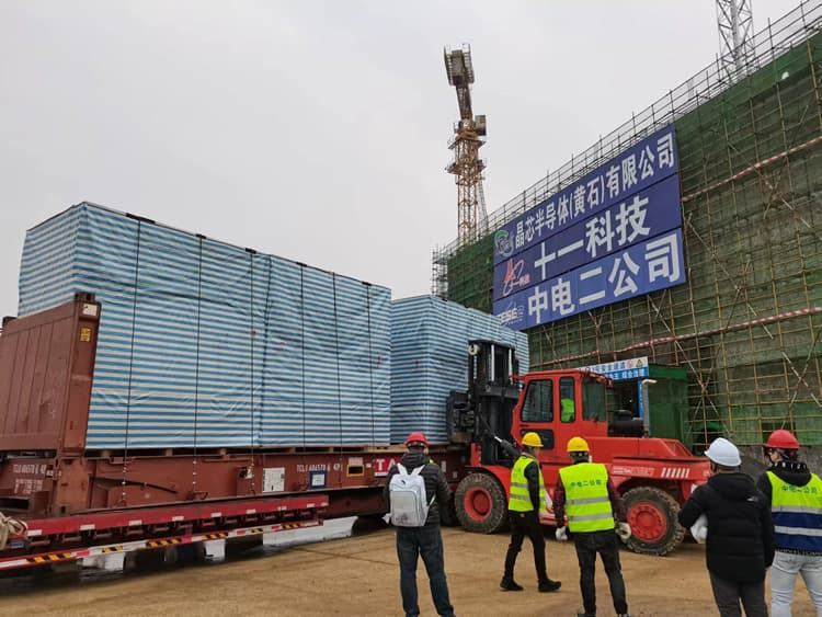 兩臺濕制程設(shè)備順利進入晶芯半導(dǎo)體項目核心區(qū)域潔凈室,隨著首批設(shè)備搬運進場,該項目正式進入設(shè)備安裝調(diào)試階段。